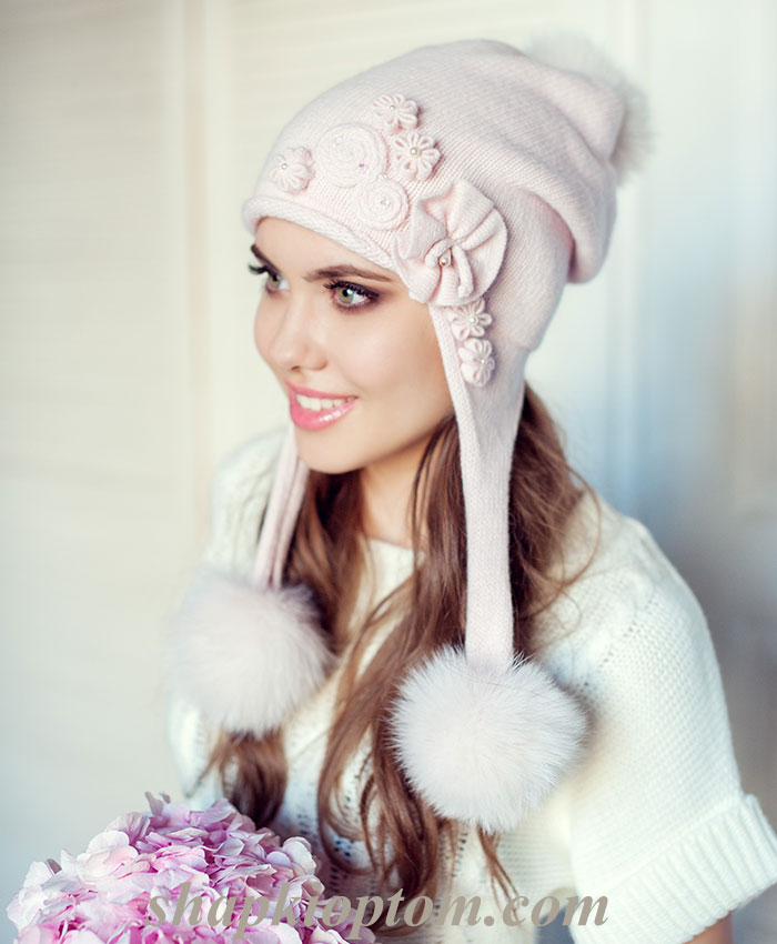 Шапка с помпономи из песца.