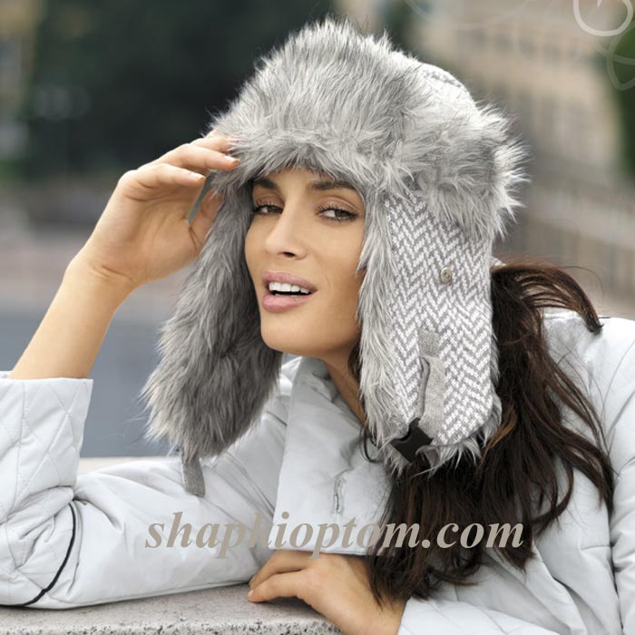 Молодежная шапка-ушанка из пряжи и искуственного меха.